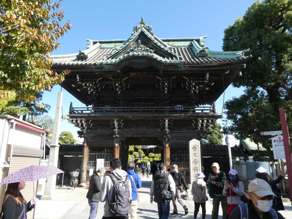 少し歩いたら、通称柴又帝釈天の​ 題経寺 ​のの二天門が見えた。武漢ウィルスとやら新型コロナウィルスとやらの感染拡大が緩和されそうで、地方のツアー客だけではなく海外の観光客も多いようである。授与所の会計も手渡しではなく、コンビニに設置された精算機で自分で行うのである。