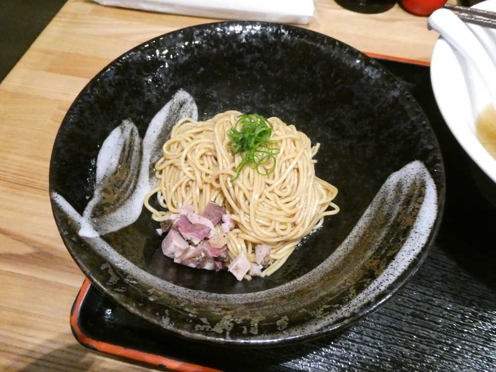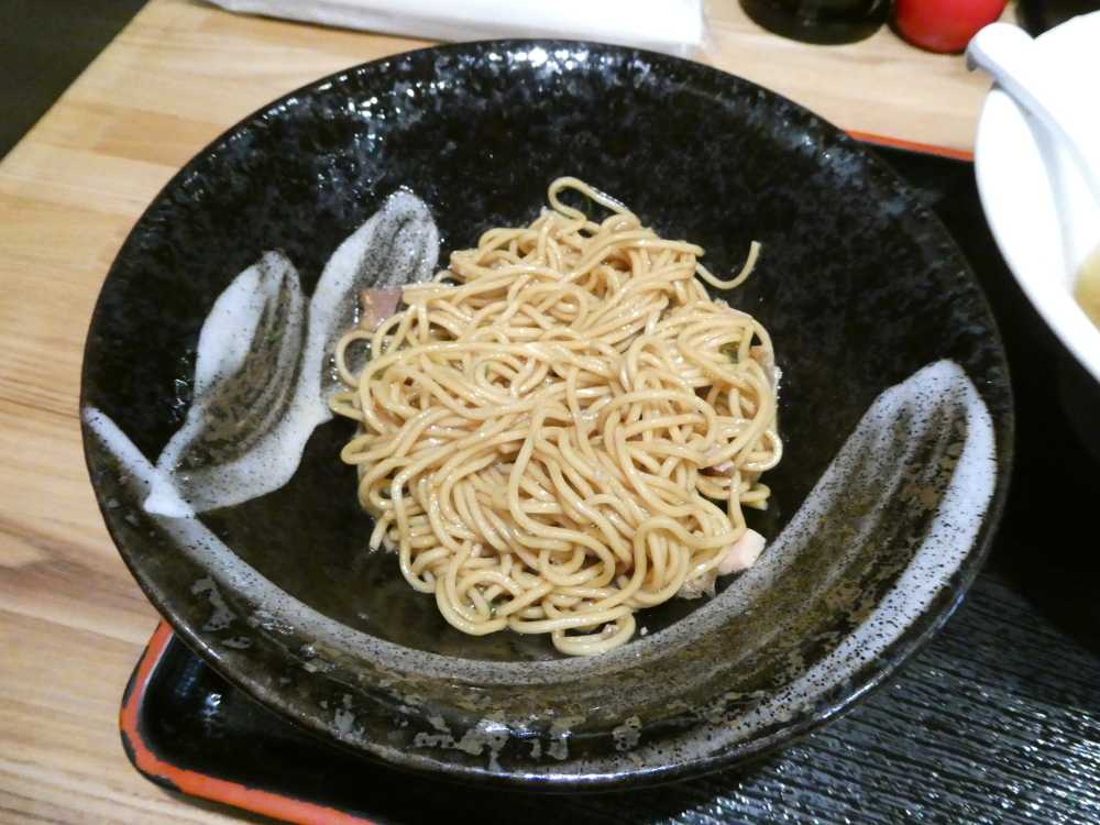 鶏の旨味がかなり強く味わえたタレだ。生姜らぁめんの麺よりさらに細めのストレート細麺は茹で加減がカタメで、歯ごたえ、歯切れ、絡めがよい。タレの旨味がすごいので、丼にかける、あるいはつけ麺のように食べるより、別々にくったほうがよいと判断。