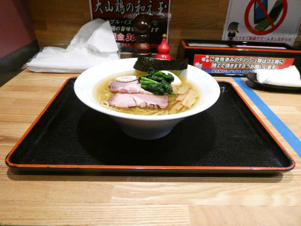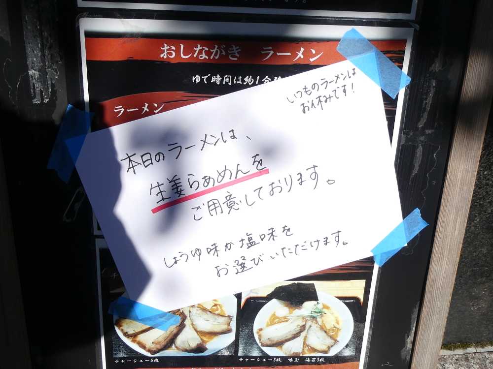 昨日から長岡生姜らぁめんを提供するが、今回は醤油と塩味から選べる。しかも大山鶏の和え玉もある。醤油も​ 久しぶり ​だが、やはり未食の塩にしよう。限定Dの食券を購入し、女将さんに渡した際に、塩を伝え、現金で生姜マシ、大山鶏の和え玉をお願いした。