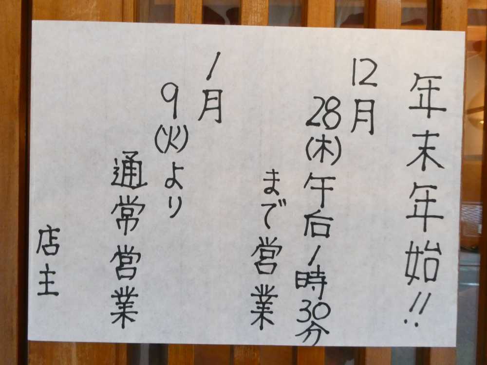 おいしかったね。やはりたまに昭和の味と雰囲気が味わえるお店に来ないとダメだね。しかも昭和の味とはいえ、味がかなり出ているので、濃厚系のインパクトがないものの十分にインパクトがあると勝手に考えている。なお年末年始の休みの情報も発表だ。ギリギリに訪問できてよかった。ご馳走様。