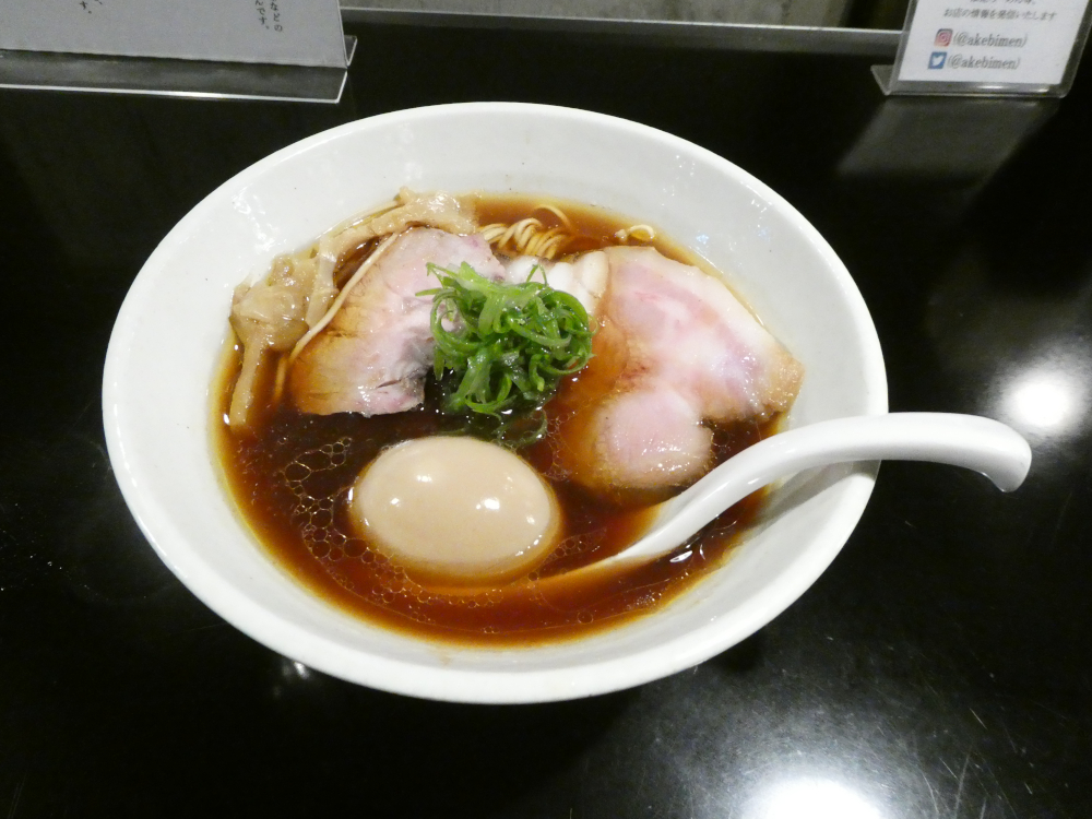 天気があまりいいとは言えないので、南柏でブランチを摂ったほうがよいかとも思っていたが、やはり​ 1ヶ月ほどぶり ​の​ AKEBI ​の味に恋しくなったので強行訪問。迷わずに特製中華そばの食券を購入してから着席。