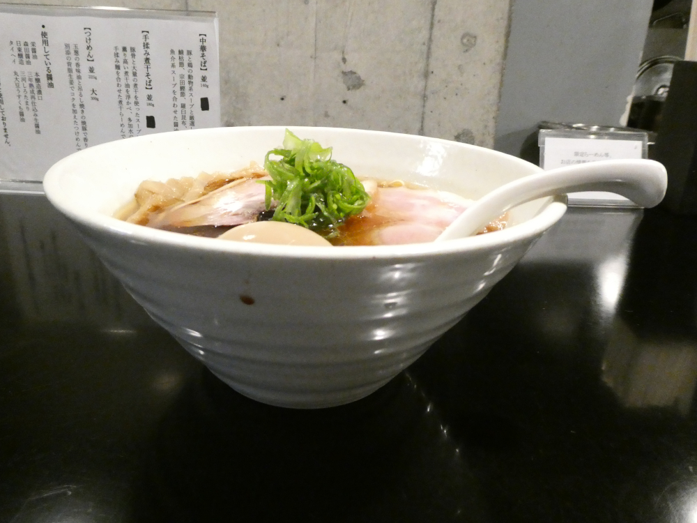 南柏の職場に雇っていただく前からすでに頻繁に食ってきたので、もはや新しいコメントが出せなくなったが、やはり毎回食ったら醤油タレの濃さ、油の効き目、出汁のコクのバランスがよく取れていることに驚いた。青ネギも薬味としてスープとの相性が良い。ストレート細麺はスープとの絡めと歯切れがよい。3種類のチャーシューは相変わらずいい。