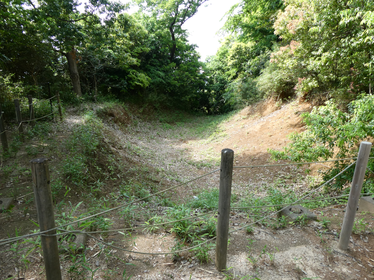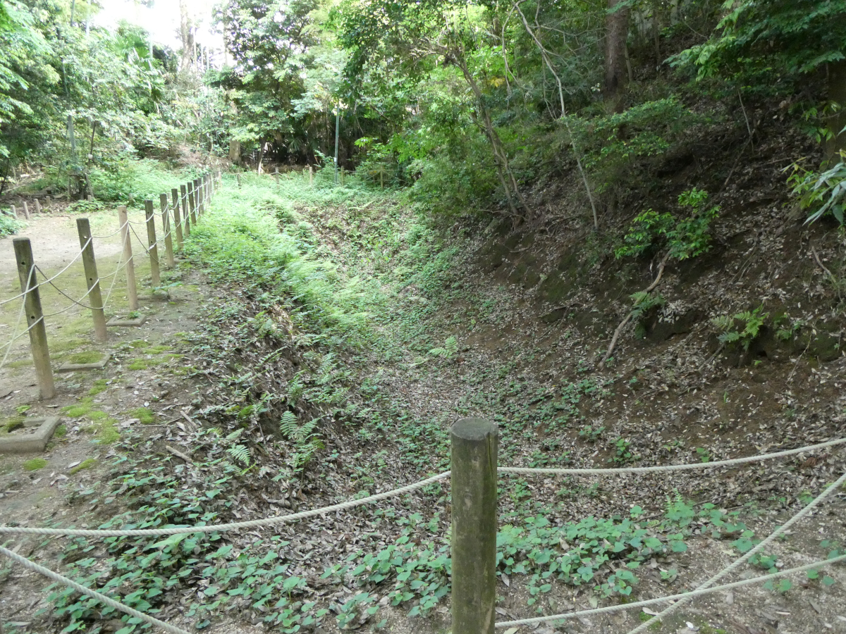 「畝堀(うねぼり)」。畑の畝に似ている施設で、極端な凸凹道かつ粘土も彫り込んでいるため、滑りやすくて、ゆっくり歩行するも困難であり、侵入した敵を討つことができる。