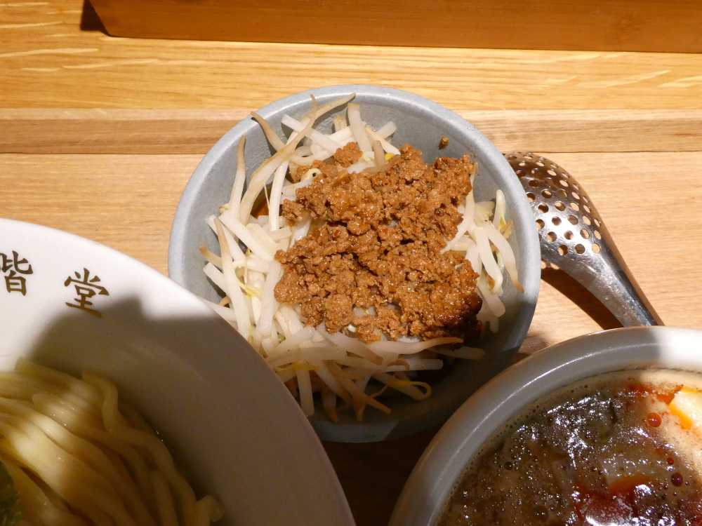 途中に別皿のもやしや肉味噌をつけ汁に浸からせた。もやしや肉味噌はラー油をかけられたが、やはり辛くない。しかし、特製とかしていないのに、デフォだけでここまでの肉があるとは有り難い。