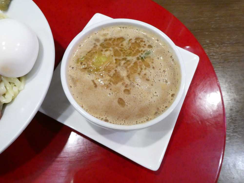 つけ汁は濃度と粘度が高そうだ。実際に食べてみると、熱々な状態が保たれており、鴨白湯RaMenに比べさらに濃度と粘度だけではなく塩気も高いとわかる。つけ汁なら当たり前だが、やはり本来の鴨白湯のの味を考えればすごいと思う。下にごろ肉も入っている。醤油味だが、タレがわき役って感じかな。