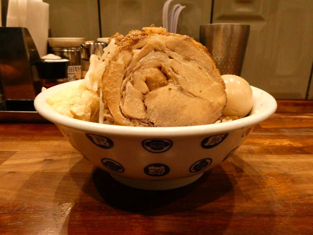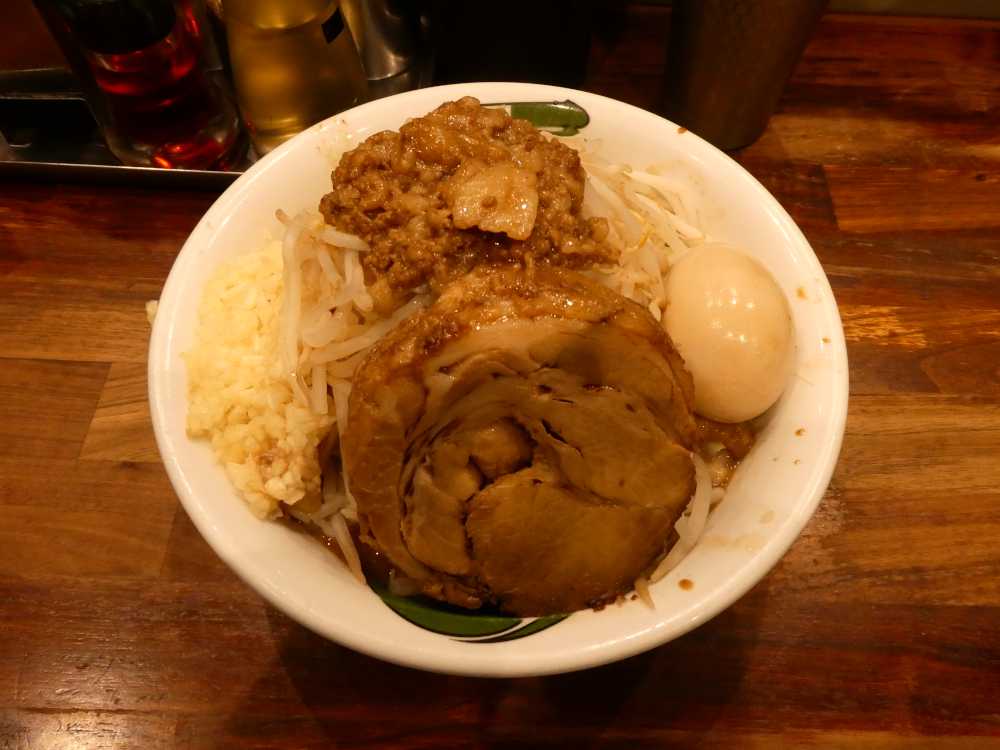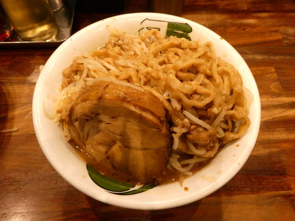 ミニの150gなので天地返しがしにくくなったが、縮れ平打ち中太麺は持ち上げやすいってことで何とか出来た。多めのニンニクとの相性の良い豚骨醤油スープは濃度と粘度のいずれも二郎インスパイアの中でトップクラスだ。縮れ平打ち中太麺はスープやもやしを中心とした野菜との絡めもいいしコシもある。ウデ肉は厚手で味付けが濃い目で歯ごたえがよい。