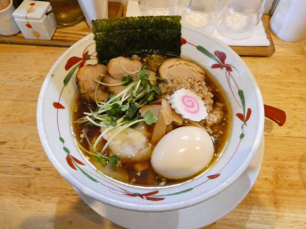 濃い目の醤油タレ、鶏油、鶏出汁のバランスがかなりよく取れている。縮れ平打ち中太麺はスープとの絡めもいいしコシもある。チャーシューはやや小さくなったが、味付けが濃い目でやや硬めかもしれぬが歯切れや歯ごたえがよい。鶏そぼろも結構多い目だ。ワンタンは皮がもちもちして、鶏そぼろによる餡も大きくて味付けがよい。