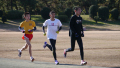 朝練、今日もつか○さが参加してくれた。今朝はいつもに増して寒かったような気がしたが、気温は4度だったようだ。少し風があったから寒く感じたのだろうか。私は足が不安ではあったのだが、走り出してみると痛みは感じなかった。「大丈夫かな・・」と不安ながらつか○の後ろを走り続ける。が、2.5キロ走った2つめの折返しの時に突如として痛みが走った。「まただ」肉離れまではいっていないだろうが、それに近い痛みを感じ「足ヤバいから止まります」と言って、ウォークに変えショートカットしてスタート地点戻った。本当にヤバい。これではマラソンなんて走れる訳がない。明日、T先生のところに行くが、けっこうショックな状況だ。時間がかかっても治さなきゃ。今日もベーシックの途中から奈々○が練習に来てくれた。けっこう楽しそうに手伝ってくれている。基本的には陸上が好きなのだな、と思った。クラブ練では、小学生の練習に感心してしまった。このレベルの練習を2人で競り合いながら・・なんて昔は考えられなかった。良く走れているなと思う。悠希の頃はこの強さがあればどこの大会に行っても優勝争いだった。でも、今はそう簡単ではない。本当に強いなと思う小学生がいっぱいいる。小学生の練習はどこまでをリミットと考えるのか・・を悩みながらの取り組みになる。勝って貰いたい気持ちはもちろんあるが、刹那ではいけないと考えている。練習を工夫して、これで勝負しながら中学陸上に移行させていきたい。中学生は中学生でまた悩ましいけど・・。中学練はつば○と美○のサポートをしながらの練習。あまりスピードを上げ過ぎないショートペースインターバルを行った。リズムが掴めればそれでOK。今日の目的は達成できていた。お疲れさま。