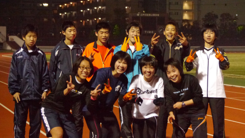 仕事を終えられずに練習会に30分ほど遅れて行くことになった。すみません。ちょうど次年度の予算を作る時期でもあり営業としては超多忙な時間を過ごしている。ふぅ・・。ということで写真整理もなかなか進まない状況だ。頑張ります。一旦出力した方がいいかもしれない。途中だけど。 今週はスタミナに特化した練習を行っている。今日の練習には一緒に駅伝に出場するゆ○りとつか○が朝練に続いて2人で参加してくれた。小Bと練習していたが、ゆ○りがけっこう走れていて「おっ」と思わせてくれた。駅伝頑張ろう!小学生のAグループは一○、峻○、友○、祐○、龍○介の5人。小学生にとってはハードなBUだ。できなくても仕方がないと思っていたが、なんとグループでラストまで行ってしまった。凄いね。友○は病み上がりでキツかったと思う。39度の熱が出たのだそうだ。大変だったね。早く調子を取り戻したい。小Bには数人の中学生、入部間もない男子部員等が大集団になってついていた。中心は小学生の高学年女子達。花○、ゆう○、しお○が前を引っ張って行く。これだけいると自分だけグループから落ちる訳にはいかない。みんな頑張っていた。 中Aは○輝と圭○の2人、中Bは○西、りょ○、○泉、岩○、雅○ 。まあまあだったかな。○輝は新宿シティで○成に負けてしまったようだ。ちゃんと練習ができていない中で勝ってしまう○成には「やるな」と感心するが、○輝は同タイムで2位になった内容をもう一度見直して勝負強さを身につけて欲しいと切望する。頑張って欲しい。今日の「+」はまあまあだった。○輝らしさが出ていた。岩○は試走的な内容で走っていた。徐々に復活を目指したい。雅○はもうちょっと頑張れるはず、しっかり!最後の本数少なめショートインターバルで中男が中女とあまり変わらない省エネ走だったことを注意したが、ラストが速かっただけであまり改善されず・・。中男は、次、覚悟しておけ。美○は日本ジュニア室内800対策練を地○にサポートして貰って行った。○季も一緒に何本か走らせた。美○に気になるところは直接伝えたが、気になるところがあってもタイムが戻って来ている。あと少しだね。何とかピークを作って本番に臨みたい。明日も練習することに・・。中女は真○美、奏○、美○子を中心に練習が進んだ。PRはまあなんとかこのペースこの距離なら粘れるようになってきたな、という手応え。その後の「+」も3分ひと桁で走れているしまあまあだ。真○美が「+」はなかなか良いところを見せてくれた。新宿シティの成績を聞いて「この調子悪さはいったい・・」とちょっと悩んだが、今日の様子を見ているとそんなに悪いとは思えなかった。なんだろう・・。今日の「+」は「調子が悪そうだから今日は奏○の後ろについて500過ぎてから上げて行け」と指示して、その通りにペースアップしさらにラストを上げられていた。ナイスラン!今日は高校でお世話になるK先生も来られていたし、ちょっと気合いが入っていたかもしれないね。いいことも悪いこともあるが、こうしてもがいているのは「前進」している証拠だ。止めてしまったらそれで終わり・・止まらずに夢を、目標を目指して行こうね!