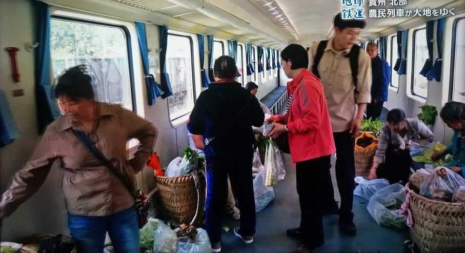 日本でも昔は千葉や伊豆などから東京方面に魚や野菜などを担いだ行商人が乗る列車があった