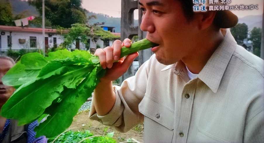 婁山関駅では駅のホームに続く畑で野菜を作っている農民と交流する。