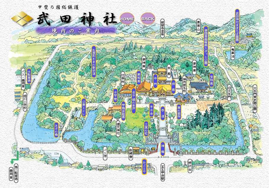 ●武田神社今回の山梨ミニトリップの目的は、鉄道保存車巡りをしながら今話題になっているインバウンドによる観光地の様子を探るためである。伊東の大室山リフトなどでは、毎日外国人が押し寄せて長蛇の列をなしている。山梨の最大の観光地である富士山、河口湖や昇仙峡、武田神社などはどうなっているのか楽しみである。とりあえず、純日本的な場所である武田神社に行ってみた。甲府駅から一直線上にある武田神社は、週末とも重なって家族連れが大勢いる。もうすぐ七五三のお祝があるので、早めに神社にお参りしているようだ。境内の駐車場は満車になるほどだ。御祭神は誰もが知る「武田信玄公」で、戦いに強かったこともありこどもが強く生きることへの願望があるのだろう。入り口には、当時のお堀や石垣が残り信虎、信玄、勝頼の三代が60年余り居住していた場所となっている。赤い神橋を渡り一の鳥居をくぐると、左側に「甲陽武能殿」と呼ばれる能舞台がある。拝殿は入母屋造りで、迫力のあるヒノキの樹脂で葺いた檜皮葺の屋根となっている。七五三お参りの行列ができている。右側に「宝物殿」があるので入場してみるが、撮影禁止だった。鎧や太刀と当時の勢力図が展示されていた。入場料500円。帰りがけに「姫の井戸」や「水琴窟」を見学してきた。向かい側には武田氏館跡歴史館がある。こちらは「堀田古城園」という昔料亭だった屋敷。武田神社には外国人の姿を見ることはなかった。
