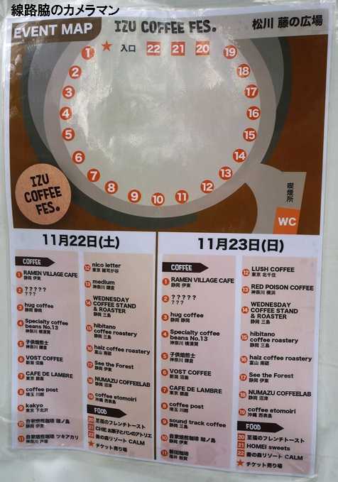 伊東市内の松川藤の広場では、3連休の2日間に全国の有名コーヒー店が集まるコーヒーフェアが開催された。