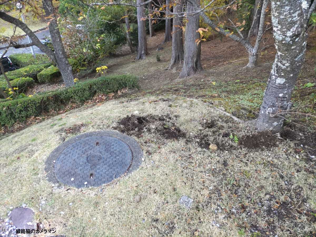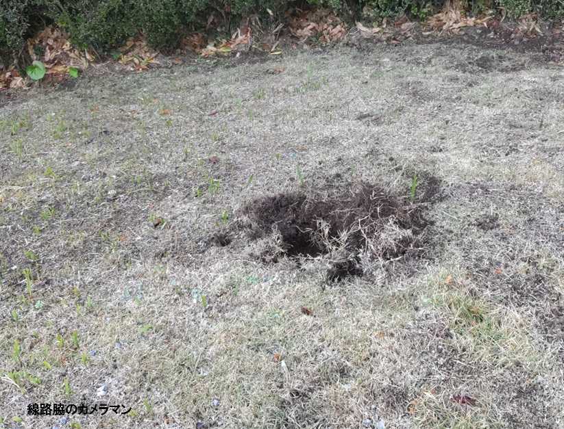 また、職場の芝生にはいのししが現れたようで芝生を掘り返された跡があった。