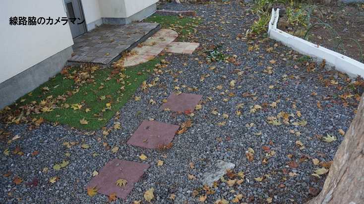 秋の風物詩は落ち葉だ。玄関前がこんな状態。