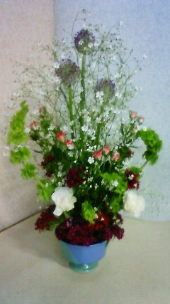 私もupしてみるw昨日のお花は「2つ以上の花器に生ける」というテーマの自由形細高いくねくねした花器を2本使って生けてみた先生宅の蔓バラのトゲが痛かったです(´゚∀゚`;)スターチスって折っても水吸うんですね…生命力強いってことなのかな止めなくていいって楽かと思いきや口が小さくて入る本数に制限がかかり苦戦空間を出すための後ろとかはついつい忘れがちで上手く入らないし止まらないしでまたもや1時間越え完成までの時間に関して注意されたら弁解できません…それにしても…今日は寒いです長野の例年の梅雨は6月中旬からですがもう梅雨入りするんですか!?やめて下さいよw学校帰りに毎週長野市で降られるのは嫌です私の住んでる上田は降らない方が多いから帰ってきたら晴れてるという天気が悪いと体調に微妙に影響するので日本で一番降水量が少ないらしい長野県民で良かった基本地元loveですが田舎なので不便で県外出たい高校卒業したら県外出るのが私のずっと前からの希望です本当になるかは自分次第体を全日通えるくらいまでにしないとあと2ヶ月でどこまでできるか生活変えると体調もメンタルもガタガタするという(苦笑)そんなひっきーでニートな華道家見習い?の生存記録(ブログ)でございますノシ