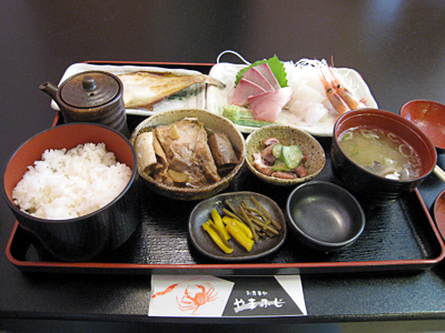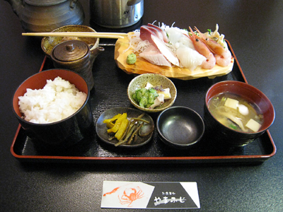 まったくブログを更新しないと思ったら、連日のブログの更新と、気まぐれにもほどがあるワタシのツーリング日記ですが、9/29 の越前ツーリングでのもうひとつの「出逢い」について早朝より、ひと言書かせてもらいます。日ごろの仕事の疲れを癒すべく、今回目指していたのは、日本海の眺望できる露天風呂「漁火」さんでした。もう何度も通って来ているけど、それでも最高の天気に恵まれて望む日本海は格別で、他のお客さんがいないのを見計らって素っぽんぽんで“仁王立ち”。心の中に、こんもり溜まって浮世の垢をゴソっと洗い流し、気分も上々で“漁火”さんを後にする。今回のもう一つの「出逢い」は、<食事処 やまふじ>さん。いつもはお風呂に入り、素通りで敦賀を目指して帰途につくワタシなのですが、今回は、漁火さんに向かうゆったり走行中に、「あ!雰囲気の良さげなお店発見!」って帰りに昼食に海の幸でも食べようと決めちゃいました。仕事の時はまったくと言ってよいほど、その効力の無いワタシの「勘」ですが、ツーリング中のこの「勘」に、今回自分が驚きました!(◎o◎)お店に入ると、迎えてくださったのは、お綺麗でこれまた雰囲気の良い女将さん(とお呼びするにはお若い感じかな)。美人に弱いワタシは緊張しながらも、「お造り定食」¥1,300を注文し、料理が出来るまで、お座敷でまったりくつろぎながら、『素敵なお店と女将さんに巡り逢えた』ことに感謝する。ほどなくして運ばれてきた食事にこれまた再び感動!女将さんがサービスで付けて下さった魚(ブリ)のあら煮の細やかな“心遣い”にもまたまた感謝!お刺身の新鮮な歯ごたえと、あら煮にまろやかな味付けに「美味なるかな越前」と今回の旅の最高の“ご馳走”に辿り着いた感がしました。食事を美味しく頂いてから、女将さんから「バイクの人が良く来られますが、何か見て来て下さったのですか?」って気にされてましたが、ワタシは偶然に魅きつけられてココに来たわけで、でもこうして是非とも紹介したくなるお食事と女将さんですので、バイカー内のネットワークでは、とても有名なお店なんでしょうね。美味しく楽しいのひと時をありがとうございました。今度は「越前がに」のシーズンにお邪魔しますと約束をして“やまふじ”さんを後にしました。お店の場所は、露天風呂「日本海」さんの前にあります。越前にツーリングで来られる方に、是非ともお立ち寄りして頂きたい“やまふじ”さんでした。漁火さんから走ってくると左手に