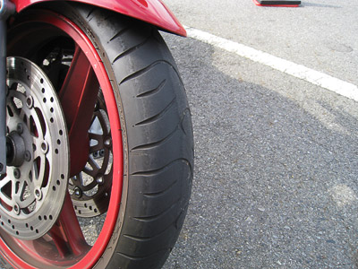 こんばんは。先日、タイヤ交換を済ませてから、やっとのお休みだった今日。天候は今にも雨が振り出しそうな雲行きだったので、遠出は控え、タイヤ交換後の試走を兼ね、例によって「愛岐道路」に出掛けて、新タイヤに慣れるべく、何度も何度も往復して、走り込んできました。 ( ̄▽ ̄)ゞタイヤは、前後とも、DUNLOPの"ROAD SMART"をチョイス。っていうもの18インチのリアに適合するサイズが、"ROAD SMART"にしかなかったんで、選択の余地無しでこのラジアルタイヤに決めてました。交換直後には、ちょっとした重心移動にも反応して、フロントからスーっと切れ込んでいくような感じを強く受けたので、最初は、『コエ~!(恐いよ~)』って思いました。! ( ̄◇ ̄;)でも、ちょっと走らせていると、今までフロントに感じていた路面から伝わってくる微震も全くと言っていい位、無くなっているのに気が付きました。 ( ゜ ・ ゜ =)「交換直後はスベリ易いんで、気を付けて下さい。」ってピットスタッフさんのご忠告とは裏腹に、今までより、全然フロントの接地感が増したのに驚き、安心して、フロントの切れ込みに任せて、小気味の良い旋回になったですよ。 (=^・^=)で、やっとのお休みとなった今日、本格的な試走をするべく、いざ、愛岐へ!ま、やってきた事と言えば、一般乗用車との車間を空けつつ、クリアラップを確保して、“本域” でのコーナリングを何度も往復しながら、確認してきた事だけなんですけど。今まではコーナー手前で、シート内側(イン側のお尻)に重心移動を済ませてからじゃないと、倒し込んでいけなかったのが、今回のタイヤでは、グリップ感の増したフロントが、倒れ込みのキッカケを与えてくれるんで、あとは、倒し込みの大きさに合わせてイン側の重心を加減して掛けてあげれば、意のままに深いリーンを楽しめるようになりました。 (v^ー^)o(説明調な文章のわりに、分かりづらい内容ですいません…)要は、今まで以上に深いリーンのまま、ピタ~っと安定して、コーナーを旋回していけるようになったので、本当にこのタイヤをチョイスして良かったって事です。(何度も言いますが、選択の余地は無かったんですけど…)一応、この後に、マップも載せておきますが、何度も往復したんで、ラインが重なっていて、走ってきたワタシ以外が見ても、ちっとも面白みがありませんことよ… (; ̄ー ̄)ノそれでも、よろしければ見たってチョ。 m(_ _)mhttp://maps.google.com/maps/ms?ie=UTF&msa=0&msid=102568465118096693017.00047439eb4663c0f62b7これだけ疾走ったんだから、何とかタイヤもひと皮剥けたかなぁ。(結構、フロントがタイヤのふちまで使われてたのに我ながらビックりしたっス)