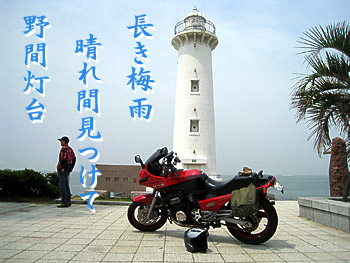 こんばんは。ブログ開設から3日目で、すでにネタに困ってしまいました…てなわけで、今日も以前にツーリングに出掛けた先で撮ってきた写真の中から一枚貼らせてもらってお茶をにごそうかと。(^▽^;)撮影場所は、あんなに長くなるとは思ってもみなかった梅雨に入りたての6月末にでかけた愛知県美浜町の野間灯台。この地図は、別なところから引っ張ってきてます。http://map.biglobe.ne.jp/index.php?lat=34.75960217&lng=136.8435035&zm=15&tp=0&gs=&sp=1追伸、明日は振休でオフなのですが、3000kmのオイル交換だったり、夜からは、会社の同僚さん達と、バドガールのいるビアガーデンで飲み会があったりと予定があるんで、残念ながら遠出はできそうにありません。( ̄-  ̄ )