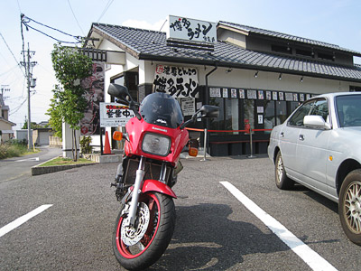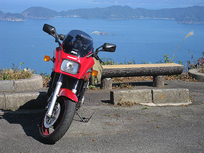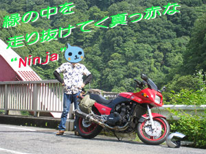 こんばんは。まだ、ブログ開設から数日しか経っておりませんが、そんな中でも頻繁に登場するキーワード「愛岐道路」正式な名称は、県道15号<名古屋多治見線>と言うらしいです。アップダウンが無いせいか、あまり多くのライダーさんたちに遭遇することもありませんが、右へ左へ豪快にも走れますし、のんびりゆったり走るのにも適してる気がします。この写真も“Ninja”を手に入れた当初、バイクに自分を慣らす為、休日ごとに通っていた頃の一枚です。“Ninja”ってのは、このKawasaki GPZ900R 自体に冠せられた世界的に通用する愛称です。“赤兎馬”ってのは、ワタシがこのバイクに勝手に名付けた名前で、変じてココのブログでは、ワタシのペンネームに使用させてもらってます。当時の「世界最速」だった"Ninja"も、今のワタシにとっては、マイルドな「ツアラー」って印象を強く受ける、長旅にも向いた相棒です。
