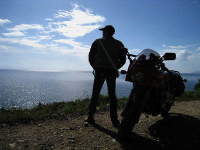 2月に更新したっきり、絶筆したまんまのブログでしたが気の向くままに、また書き始めてみようと思います。しっかし、今年の夏は“暑かった” ですよね。たまの休日も、ツーリングはおろか、バイクのシートを剥ぐことすらしない有様のワタシでした…。でも、9月も後半に入ると一雨ごとに涼しさを感じられるようになり、雨が続いた晴れ間に休みが重なり、9/29最高の秋晴れの下、これまた、ひっさびさのツーリングに出掛けました。目指すは、琵琶湖~福井・敦賀~日本海眺望の露天風呂“漁火”…って、ワタシにとっては、新鮮味の無いルートですけど、走り出した先には不思議と、新鮮な出逢いが何かしら待ってるんですよね。一つ目の「出逢い」は、敦賀へ向かうR8で遭遇したマスツーリングの一団の皆さん。先頭のゼファー750(?1100)さんが率いる、計5台の「アメ」「スク」混成チームでした。途中まではいいペースで、チームの後尾に追いつくのにやっとだったのですが、一車線のR8を道幅いっぱいのトレーラーに行く手を阻まれ、一気にペースダウン。リーダーのゼファーさんも、後続のことを考え、追い越しを遠慮してるのが判りました。が、大人気ないワタシは、そんな遅行する一団にイラっとしてしまい、見通しの良い長い直線路で一気に、一団+トレーラーの追い越しに挑みました。ワタシが「動いた」のとほぼ同時に、ゼファーさんは路肩側から追い越しをかけたのを確認。結局、トレーラーを追い越せたのは、ゼファーさんとワタシともう一台だけで、後続が気になってる彼は、「どうぞ」と手振りで道を譲ってくれて、感謝の意をワタシもハンドで応じ、屈曲路を一気に加速して先を急ぎました。しっかし、後続がいるため、道を譲ってくれたゼファーさんでしたがワタシがミラーに目をやると彼の青白い閃光が追い着いてこようとしているのがアリアリと感じられました。先行する車もまばらで、高速走行可能な屈曲路での知らぬ者同士の“おっかけっこ”が始まり、右へ左へ、愛機を寝かしこみながら、お互いの“技量”を披露し合う。「能ある鷹は爪を隠す」なんてゆうけれど、こんな最高の“御馳走”を楽しんでるのに、常識人ぶってる余裕なんて、Hi Speedで遥か後方に置き去りですよ!敦賀へ向かう信号待ちで、鼻先を並べた二人はお互い恥ずかしげに軽い会釈でエールを交換し合い、ゼファーさんは今度こそ本当に引き離してしまった後続を待つべく、路肩にバイクを停め、ワタシは更に先へと向かいました。もう一つ、これとは別の「出逢い」があったのですが、ダラダラと長い文章になってしまいましたので、それはまた別な機会に書かせていただくとしましょう。では最後に例のごとく、往路の地図をリンクして、ひっさびさの執筆はこれにて終了させて頂きます。「あ~ぁ、疲れた…」http://maps.google.com/maps/ms?ie=UTF&msa=0&msid=102568465118096693017.0004918d787c31f44326e