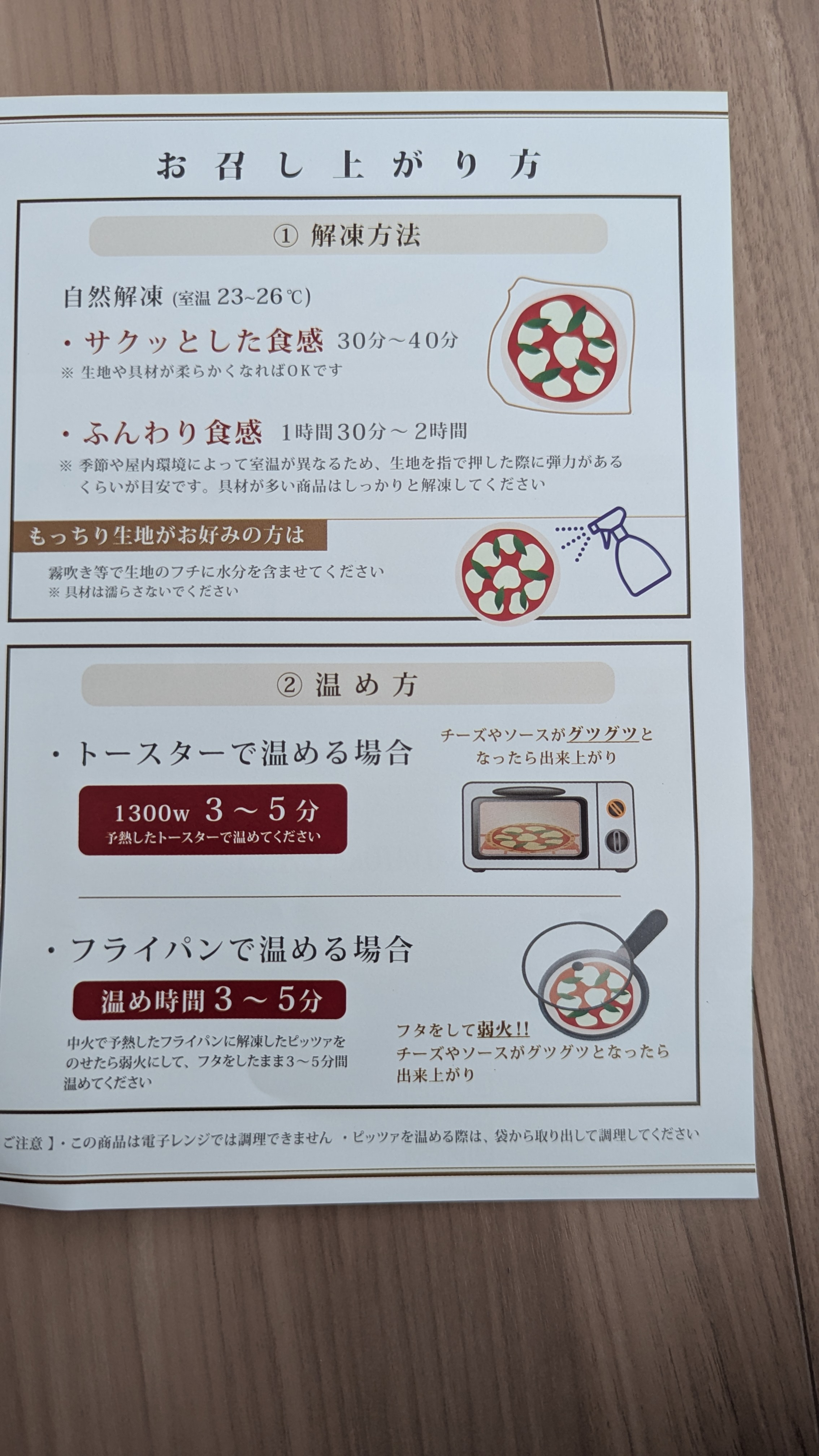 ピッツァの調理方法等も同封されています。