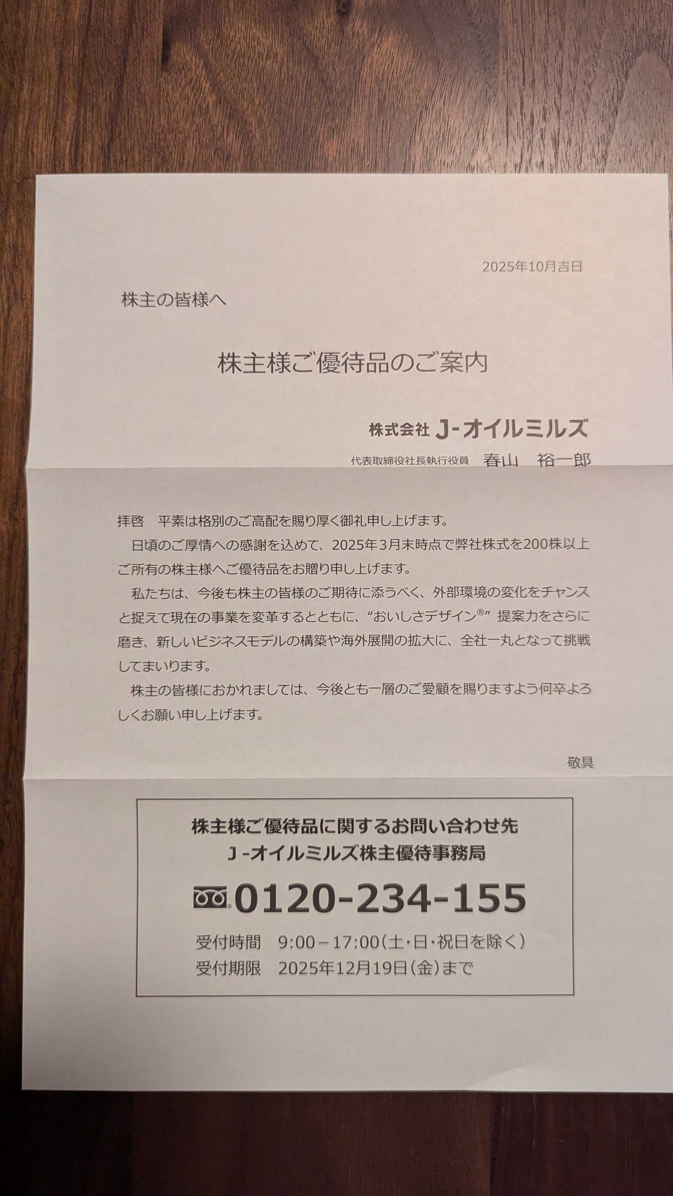 優待投資家の観点からみると、1年に一回調理油がいただけるので、料理をする方は持っていて損はないです。