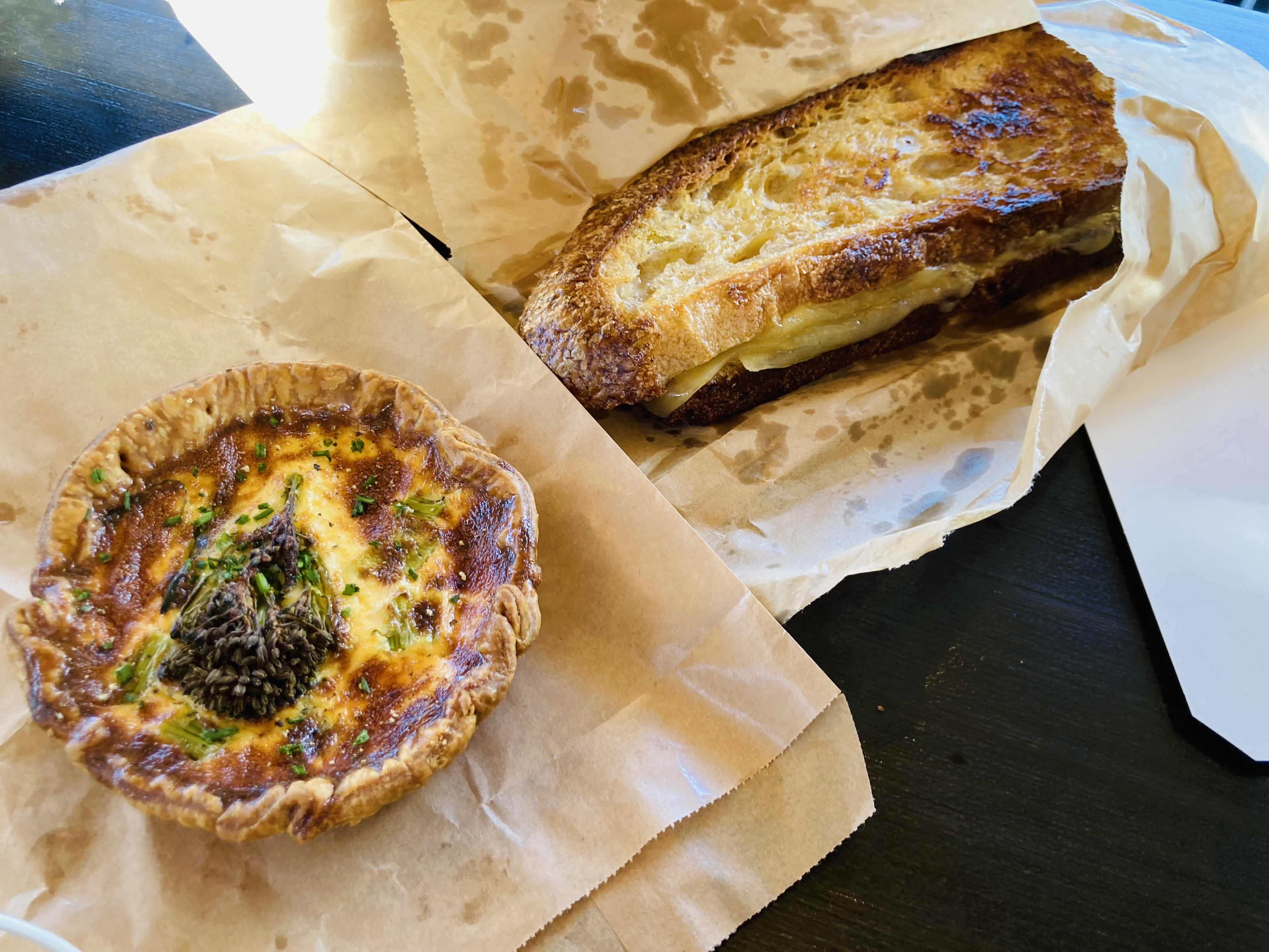 先程購入したサンドイッチ。焼かれてチーズトロトロで出てきたのにビビりました。美味しすぎる。