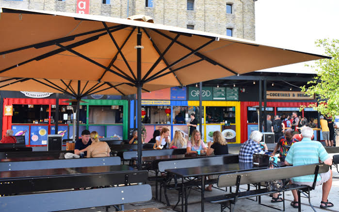 姪っ子はフライドポテト追加🍟私は別のお店でサーモンのスモーブローを追加。お店がたくさんあり、清潔なトイレもあるので食事しながらゆっくりおしゃべりを楽しみます。