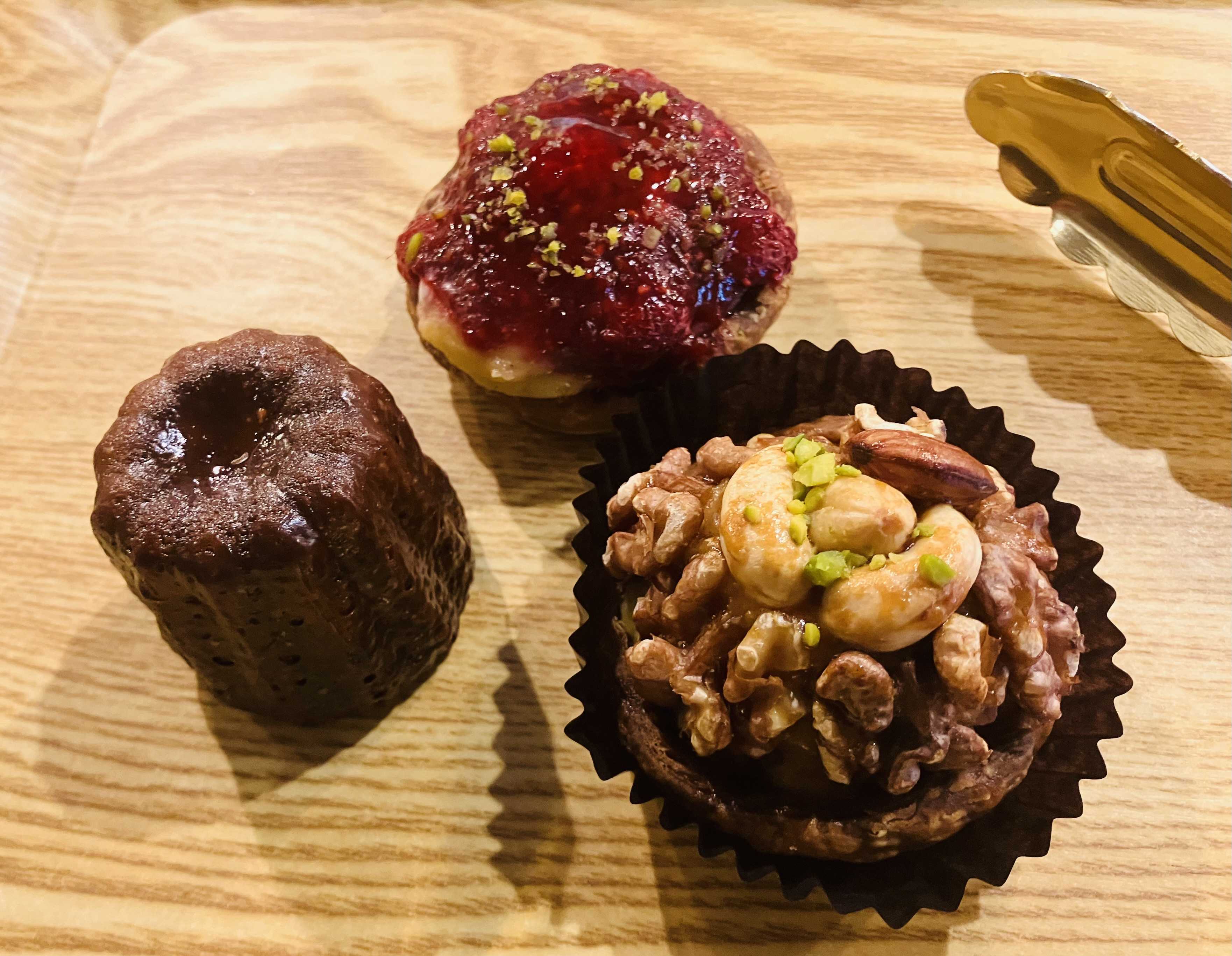 カヌレとナッツのタルトとラズベリーのタルトにしました✨