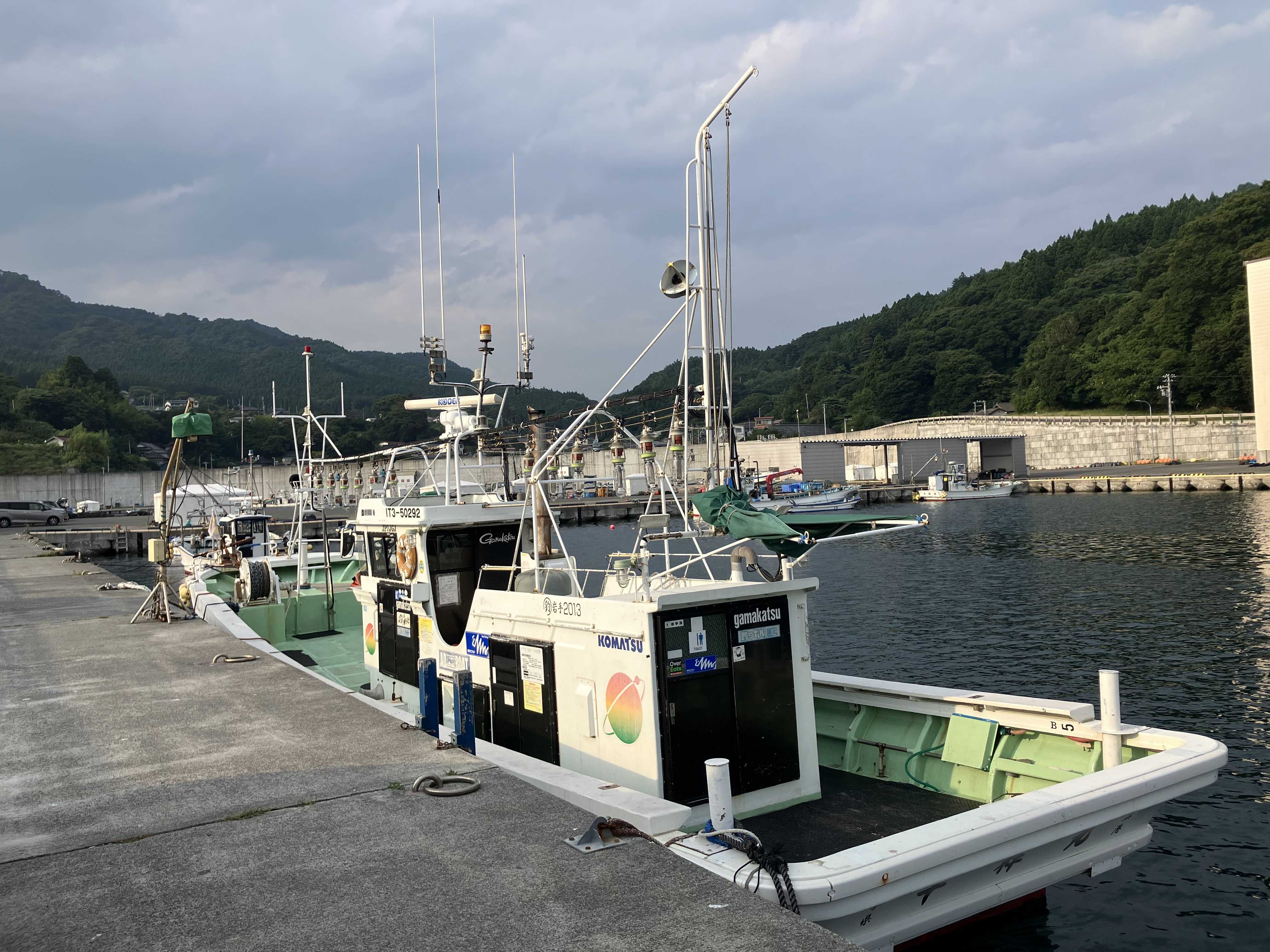 仙台から3時間のドライブ。途中、道の駅でソフトクリーム食べながら大船渡の崎浜魚港へ。
