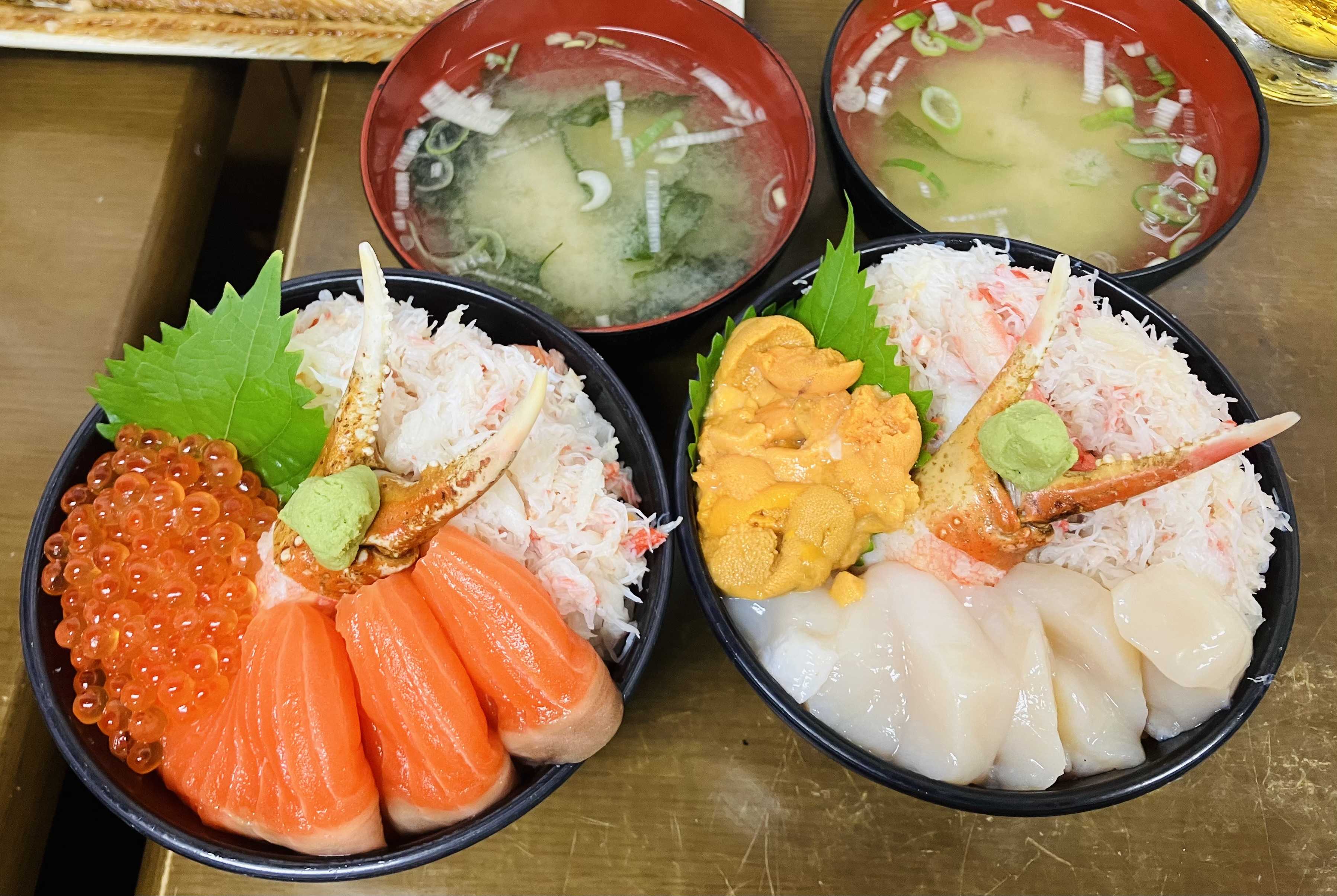 ウニもホタテも最高!見た目、小ぶりな丼だったので油断した、ご飯もカニも量が多くて満腹になります。