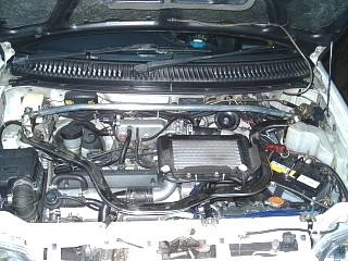 先日、ストラットタワーバーの変わりに フロントタワーバーに取り替えましたが、左右のストラットの取り付けが、連結されていないために フロントパワーバーに 穴あけ加工をして ステンレスのステーを付けて そこにタワーバーを取り付けました。結果として フロントパワーバー&タワーバーになりました。