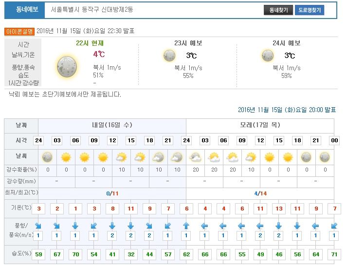 韓国気象庁きょう15日午後10時半に発表したあす・あさってのソウルの天気予報