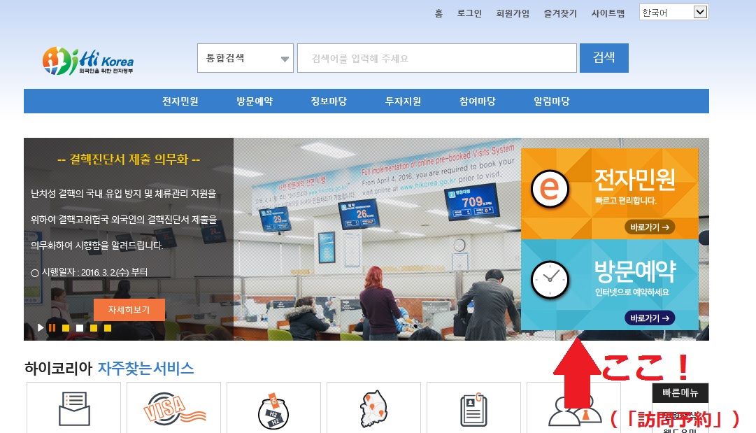 すでに下記の入管では入管の申請時にネットで事前申請することが決まりになっているんですが、比較的手続き者が少なかったわが京畿道高陽市(それと坡州=パジュ=市)管轄の楊州出入国管理事務所高陽出張所(ソウルメトロ3号線直通一山線・花井駅そば)でも、今年2017年7月3日より入管出頭前にネットで事前予約をしてから書類申請という形になる、との連絡がありました。 ーー訪問予約制全面施行案内ーー ●全面施行事務所および出張所 ・事務所:ソウル、仁川、水原、ソウル南部、釜山、楊州、清州 (Hi Korea HPよりキャプチャー・2017.4.27現在・上記入管で申請の場合はHi Korea HPで事前に訪問予約を!!特にソウルなどは申請者が多いので要注意!)