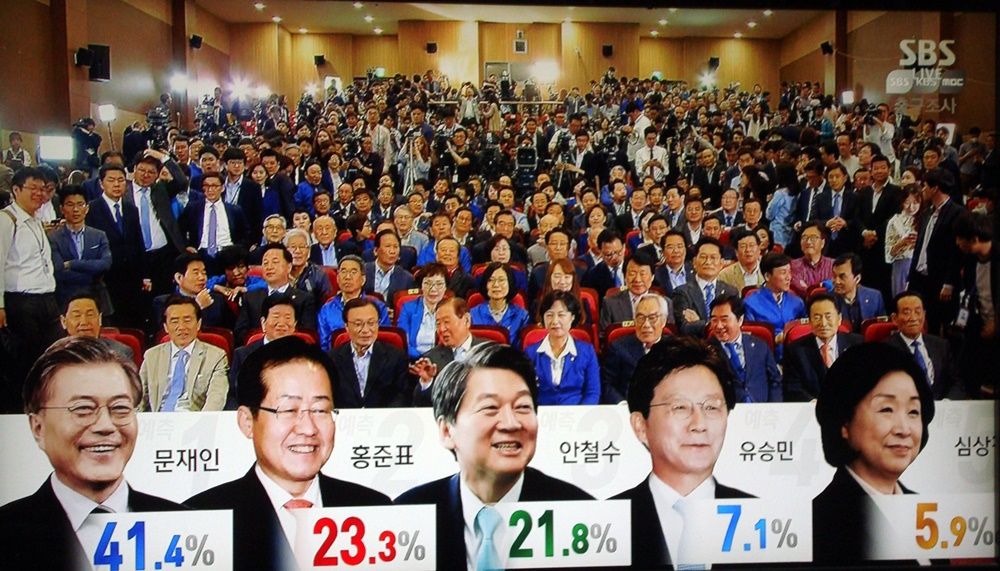 で、一時期は文候補と接戦を演じた中道左派の安哲秀候補は3位の21.8%。やはりTV討論会でイマイチだったことと、THAAD配備賛成に転じたりと政策を保守寄りに方向転換したりした影響が大きかったんでしょうか。