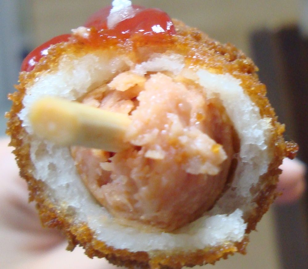 こちらはオリジナルの明朗ホットドッグ。米粉の衣なのでこんな感じで白いです!