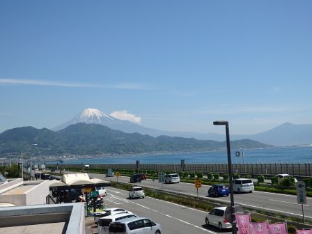 静岡ICから東名に乗り、由比ガ浜PAで小休止。ここからの富士山と海の眺めは最高。