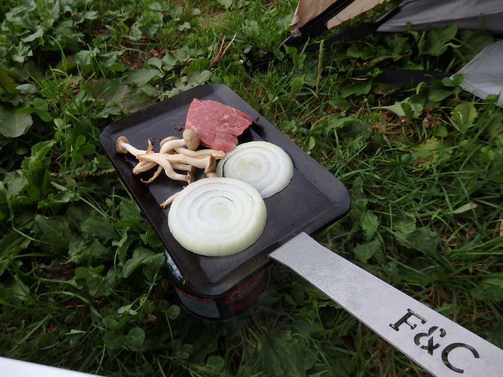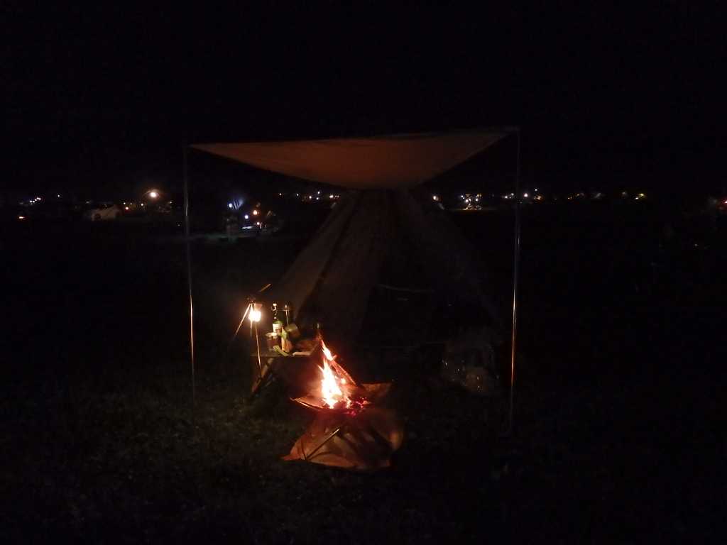 焚き火にあたりながらまったり過ごしていると少し雨が降ってきた。小さいひさしのお陰で焚き火も続けられたが本降りだと厳しいだろう。