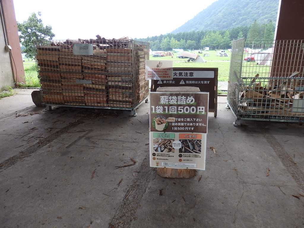 薪は詰め放題があり針葉樹の広葉樹を混ぜながら袋から溢れんばかりに詰め込む。