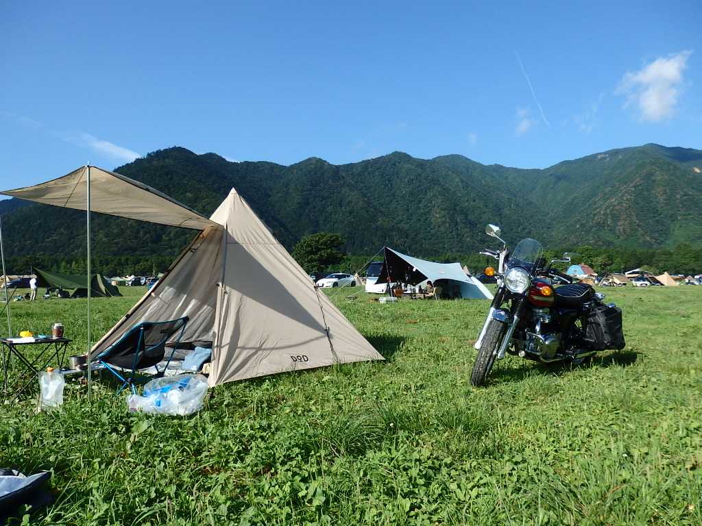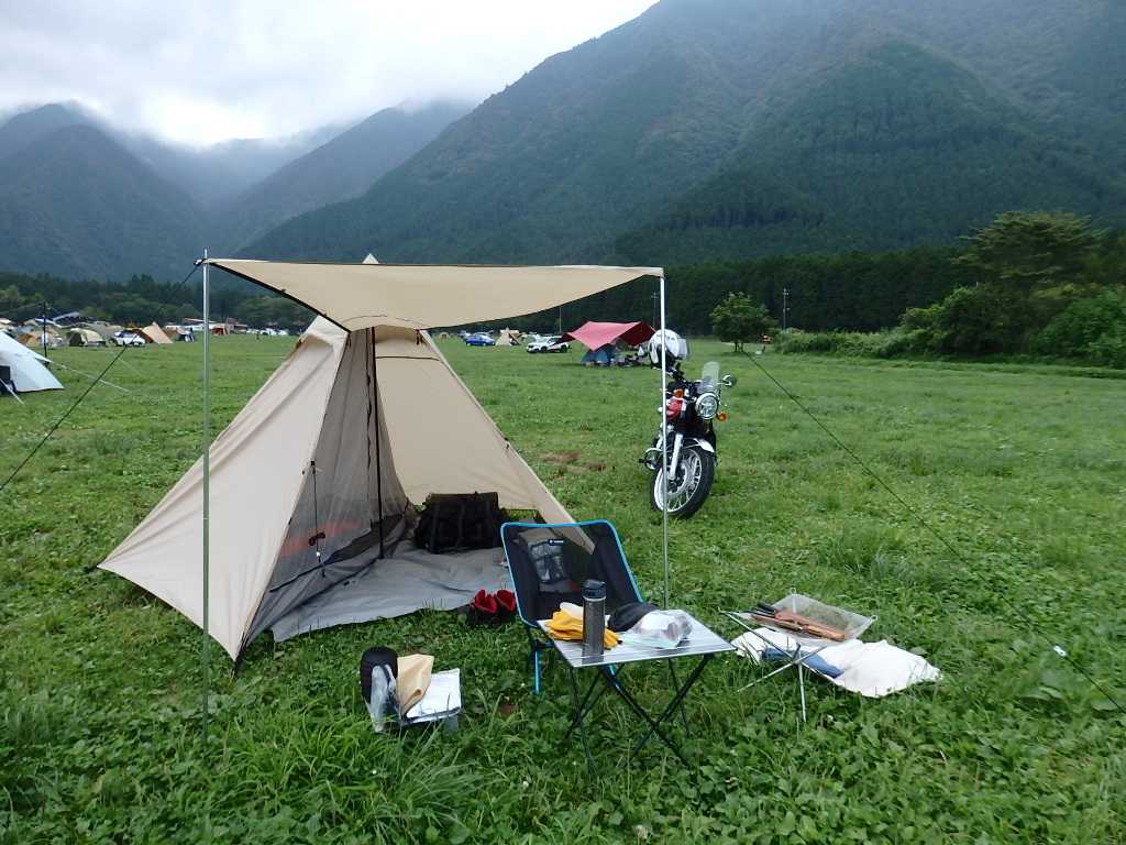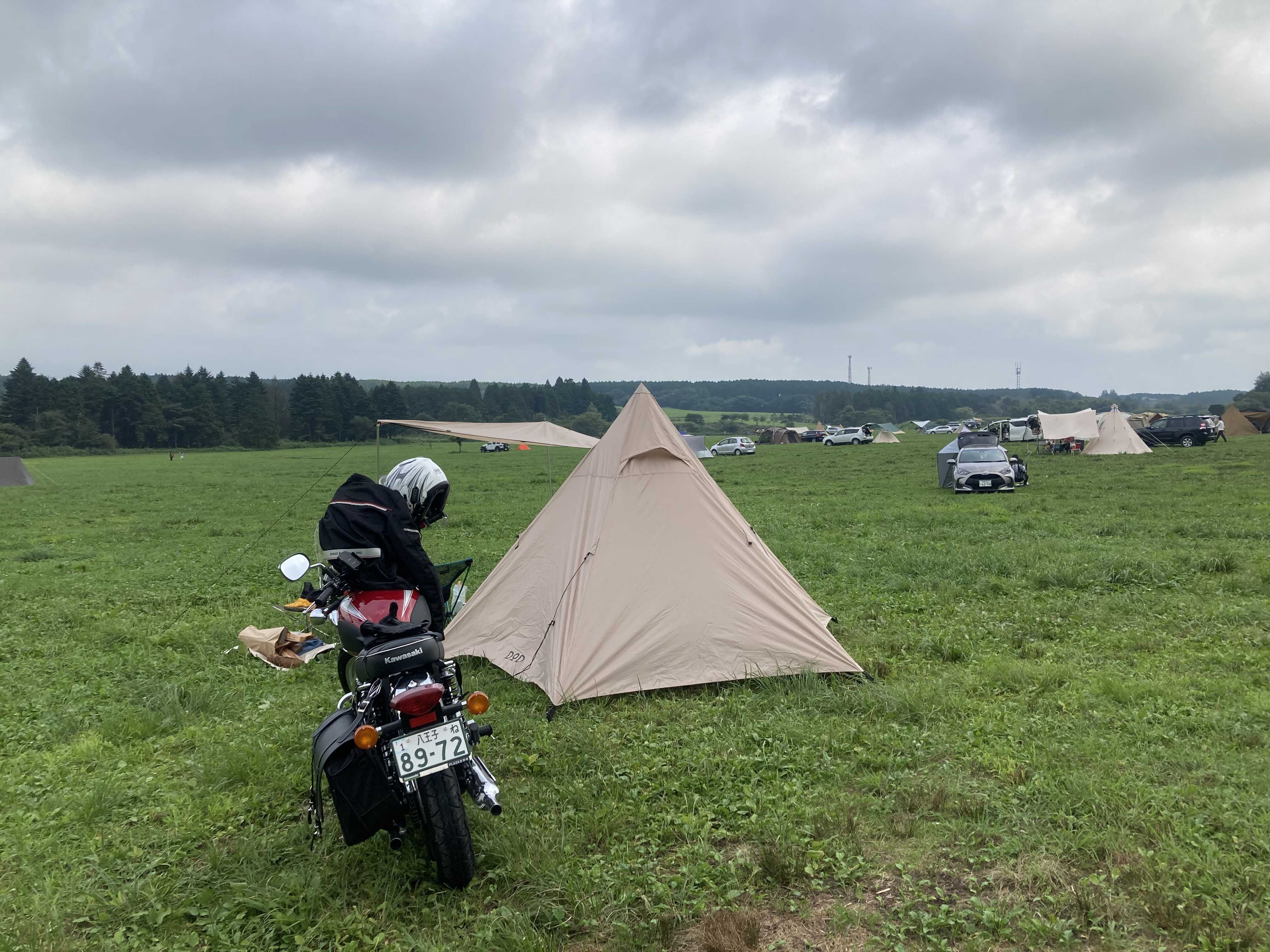 春の大洗以来のキャンプツーリング。今回はDODのライダーズワンポールテントでの初キャンプ。天候が不安定で予約していた上毛高原キャンプグランドは残念ながらキャンセルし、雨に降られずに済みそうな場所をチェックし、ふもとっぱらキャンプ場に決定。普段は選ぶことのないエリアだがこういう選択もあり。