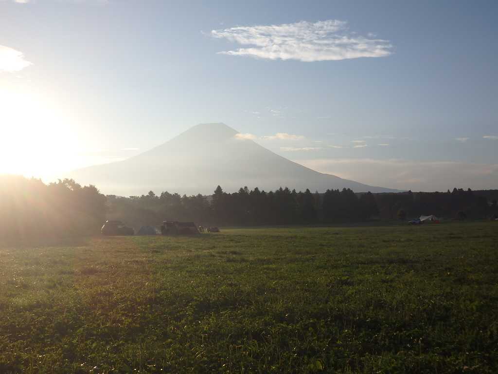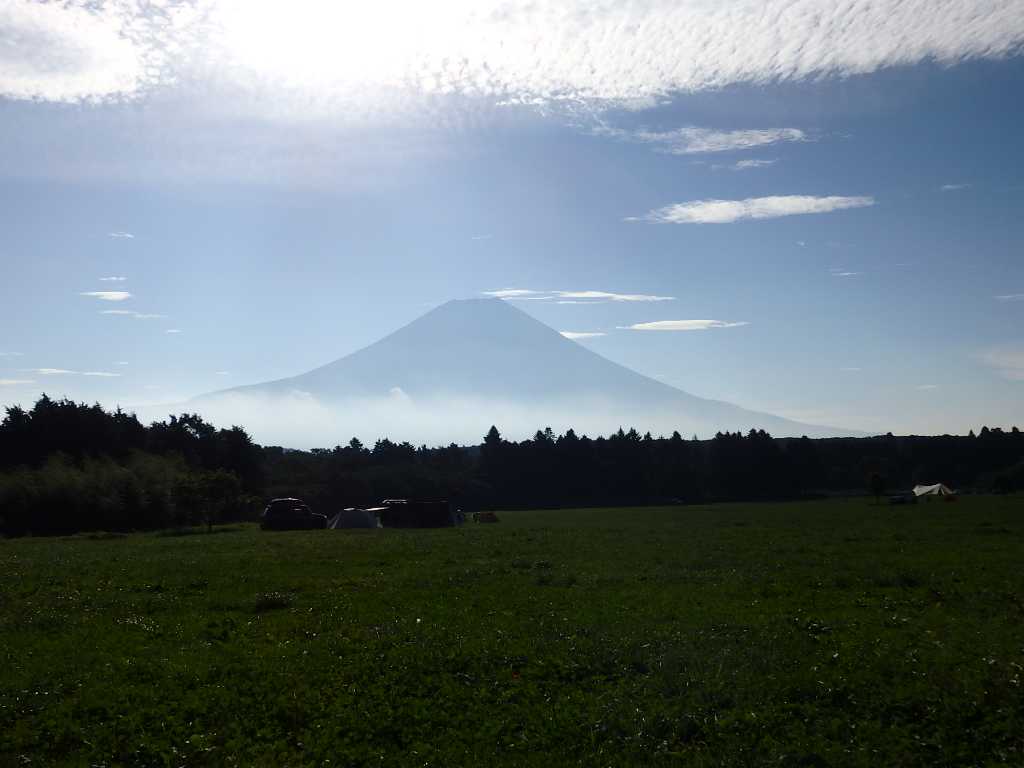 少し不便だが富士山の眺めが良さそうな区画で設営。まだ慣れないせいもあり設営するのに無駄な動きも多く大量の汗。