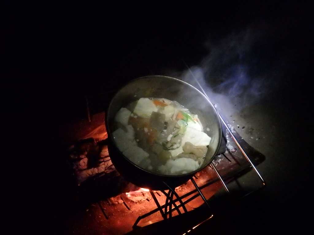 6時半に起床。マグマをシュラフの中に放り込んで寝たがそこまでの冷え込みではなかった。残った薪で火を起こし。しばしまったりと過ごす。