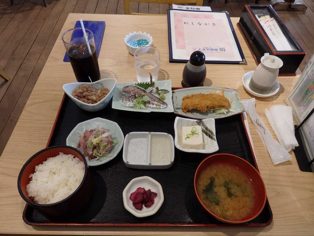 あじづくし定食は刺身、たたき、フライ、なめろうがセットになっていて満足。バイク客には紅茶かコーヒーをサービスしてくれる。ありがたくいただく。