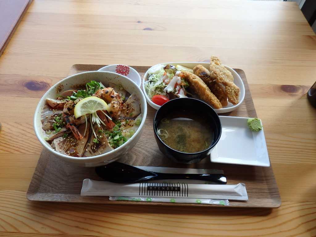 ここは国道128号沿いに立地しており海を眺めながら炙り海鮮丼を食す。