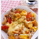 トマトと豚肉のイタリアン風丼料理名:イタリアン風丼作者:mane11■材料(1人分)白いご飯 / 茶碗1杯プチトマト / 1個ちくわ / 1本豚肉 / 30gしめじ / 5~6本とき卵 / 1/2個とろけるチーズ / 1枚長ネギ / 2cm【調味料】 / オリーブオイル / 小さじ1ガーリックパウダー / 少々塩コショウ / 少々水 / 50ccコンソメスープの素 / 小さじ1/2醤油 / 5~6滴酒 / 小さじ1/2砂糖 / 一つまみ■レシピを考えた人のコメント見た目よりは、あっさり味な丼です(笑詳細を楽天レシピで見る500レシピ達成しました8月中に500レシピ作れるかな?って思ってたんだけど、500いきました~!全部自分の作ったものですから、忘れる事なんてないだろなって思ってね・・・時々見直して見ると・・・・あれ?これは、いつ作ったっけ?なんて事も最近はあります(笑ブログをはじめる前は挫折しそうになった事もあったのですがここで皆さんに声をかけていただけた事が励みになって頑張れたと思います。これからも 宜しくお願いいたします。のんびりな私なので 亀のように~ゆっくり長く続けていけたらいいなと思っています。次は1000レシピ目指しまーす^^SA3D0009 posted by (C)杏衣応援クリックお願いいたします♪にほんブログ村