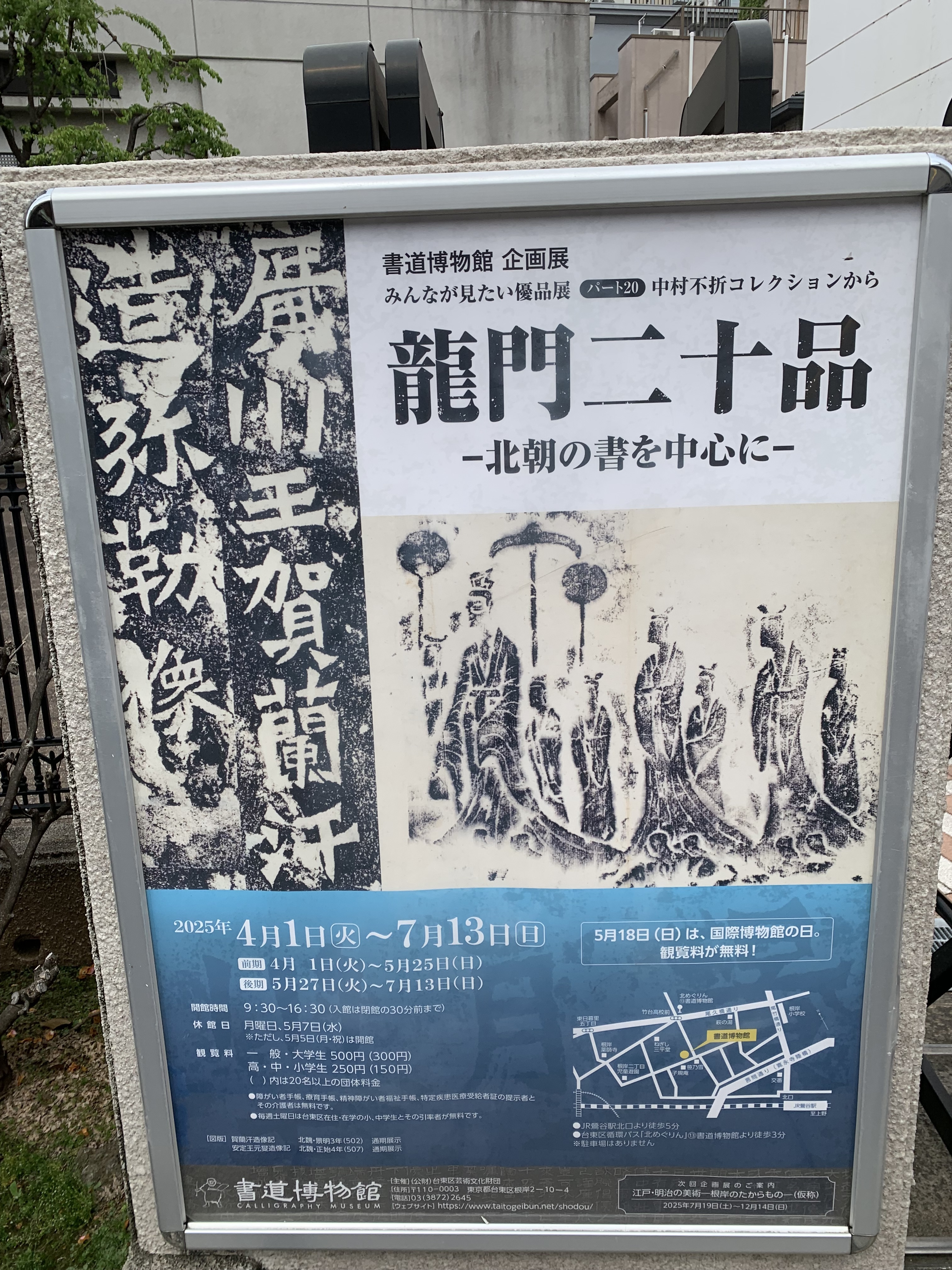台東区立書道博物館に龍門二十品展を見に行った。上のこの一行を読んで、意味がわかる人は日本人の10000人に1人ぐらいだろうか。龍門とは北魏の首都だった洛陽の郊外にある世界遺産、龍門石窟のことであり、そこには490年ぐらいから510年ぐらいにかけて彫られた石仏がある。仏の横には誰とその仲間がその仏像を何のために彫ったかという理由が刻まれた、北魏楷書の文字が多数残っており、中でも選抜された20の石碑が龍門二十品なのだ。ねこまんまねこ氏は2019年7月に龍門に行った、と、このブログの海外旅行編に書かれている。とにかく暑い日で、暑すぎて頭痛が起こり、死にかけた記憶がある。その翌年、ねこまんまねこ氏は大病した。龍門二十の文字は、まだ書道やその時代がよく分からない時期には、何て下手な文字なのだ?!と思ったのが正直なところ。ところが、2019年頃ねこまんまねこ氏は遂にその文字群の奥深さというか、真似の出来ない崇高な美しさに目を見張る事になる。と、ここまで読んでウンウン頷く人は20000人に1人だろう。もはや大月市とか大町市とか糸魚川町とか銚子市に1人いるか居ないかのレベル。ま、今日はギャラリートークを聴いて、楽しい時間が過ごせました。