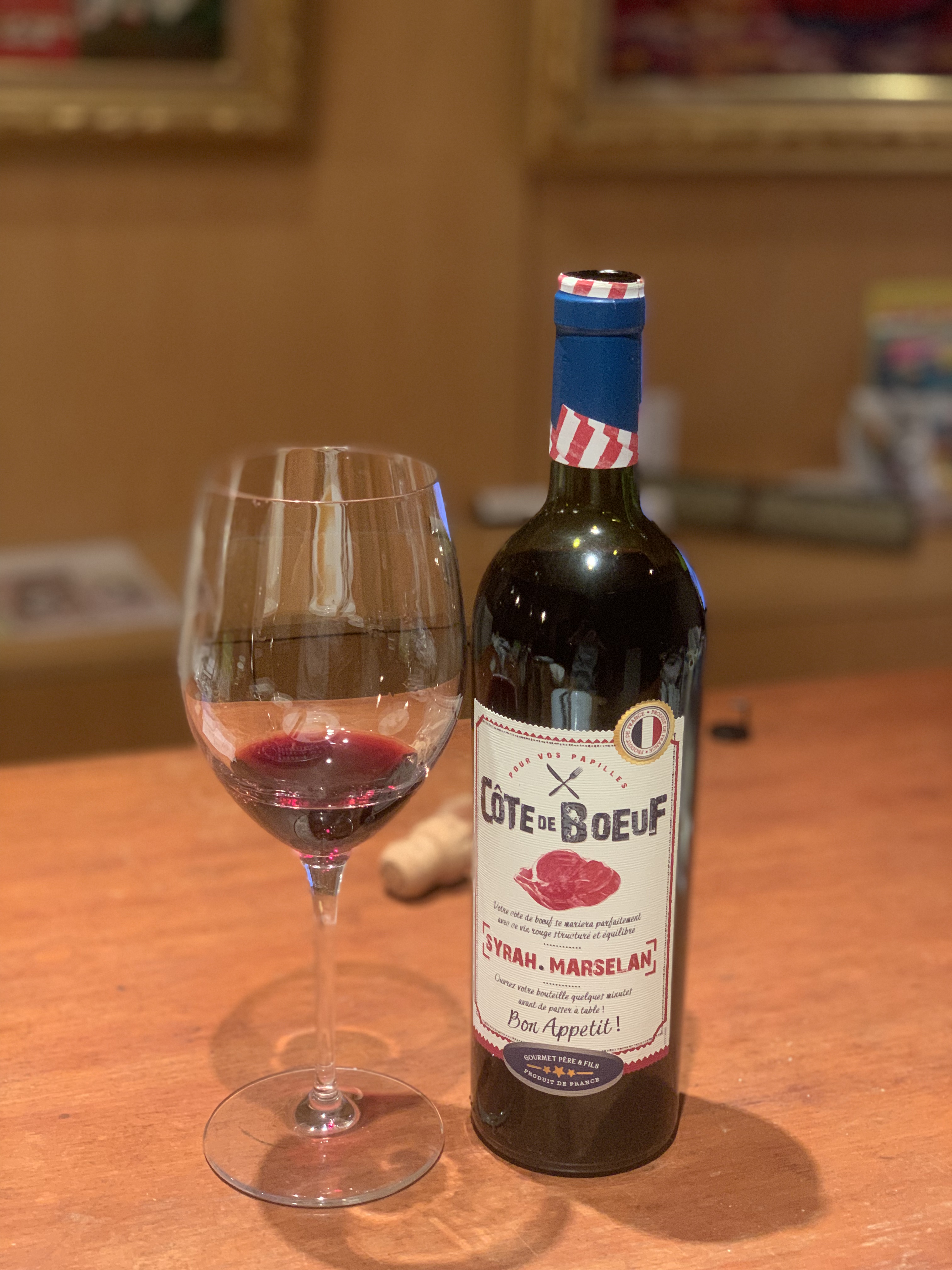 フランスのヴァン・ド・ペイのようである。ピーターズ・バッハというドイツに近いベルギーの南のバラン県の地域のワインらしい。モトックスの輸入。モトックスは私ねこまんまねこ氏としては信頼している。モトックス輸入であれはある一定の美味しさと、適度な価格だと思っている。シラーズ・マルセランというブランド。甘い、という第一の印象。シラーではなくマルセランが甘いのだろう。ドイツのワインには甘い品種が多いので、少しそういう影響あるのかな。甘いのでキリッとさせたくて冷やして、カジキマグロがあったので酸味を効かせてニンニクで焼いてみたものと合わせた。といっても私ではなく妻が作ったのだが。掃除が全くできないけど料理は出来る。冷やしてもまだ甘いけど、酸味とかタンニンの輪郭が締まったのでまあまあ飲めるワインだった。