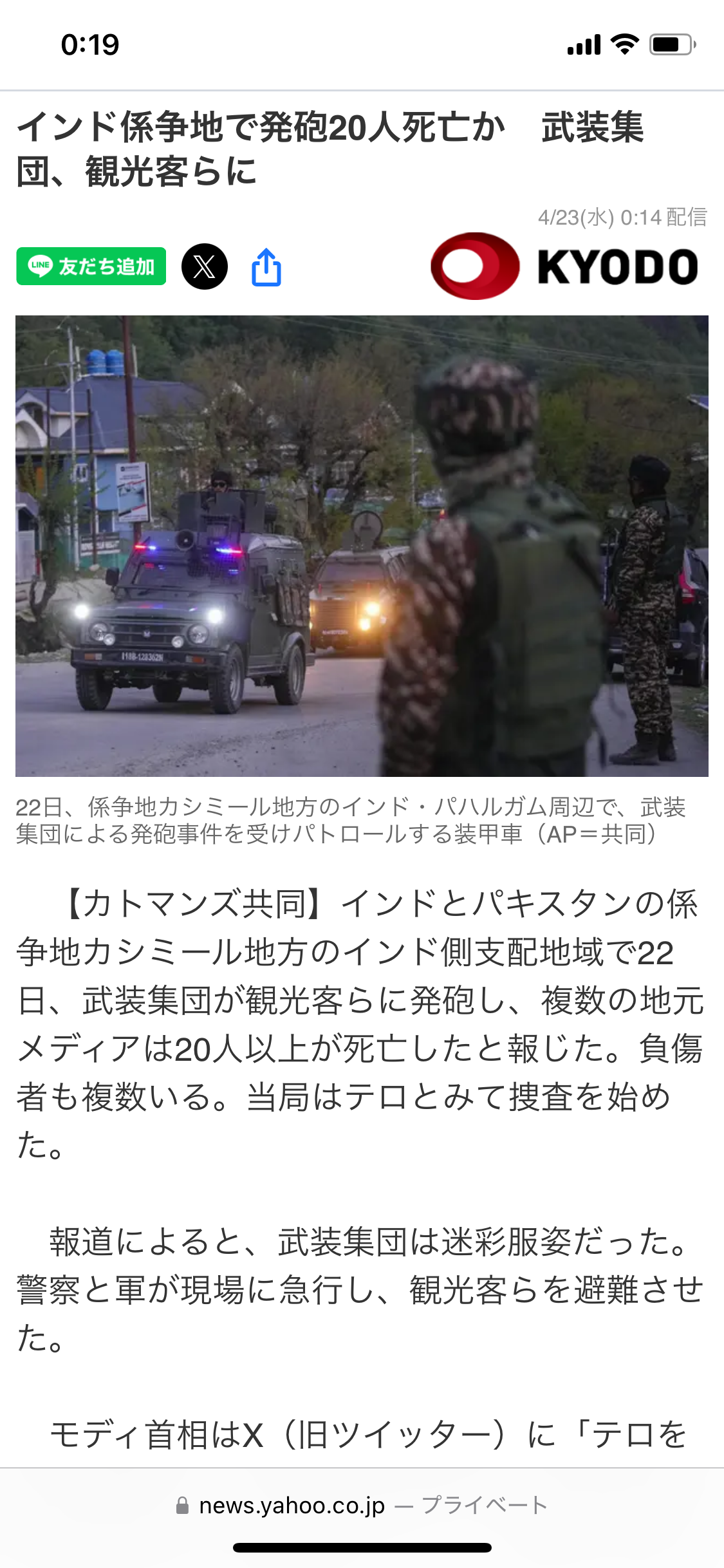 詳細はまだよく分からないが、インド北部のカシミール地方は、ほぼほぼスイスと呼ばれる美しい山岳地帯でキャンプなど楽しむ外国人が多い場所。そこで観光客20人以上死亡、、、悲惨だ。昔、ねこまんまねこ氏はハトシェプスト葬祭殿という遺跡に行ってとても感銘を受けた。しかしその7年後にハトシェプスト葬祭殿でイスラム原理主義者のテロ集団が観光客を62人撃ち殺す事件が起きた。日本人の新婚旅行客10人も含まれていた。その時の悔しい気持ちが忘れられない。同じ様な不毛な事件が何度も起こる。