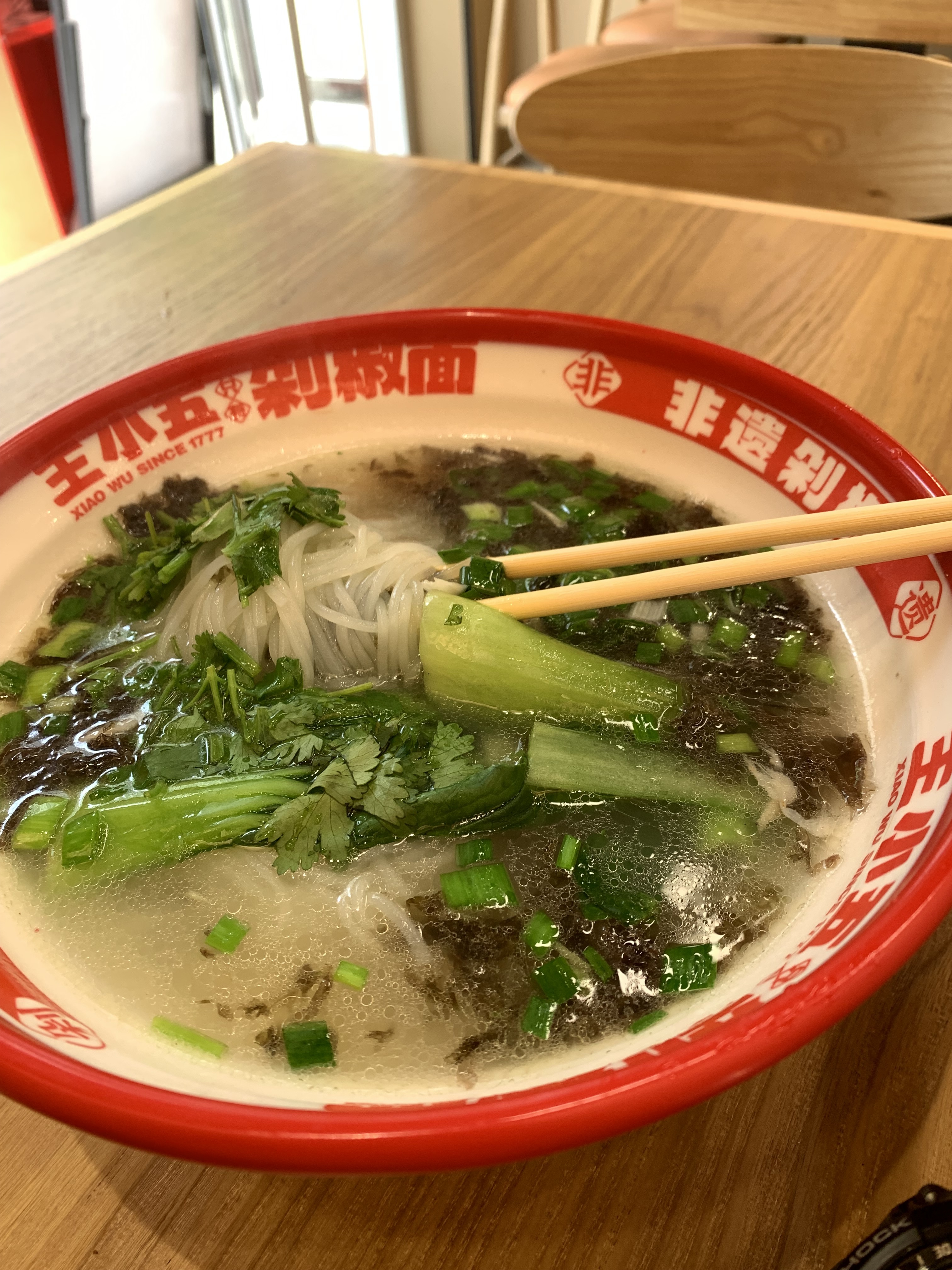 お粥を頼んだつもりがスープのビーフンが出て来た。